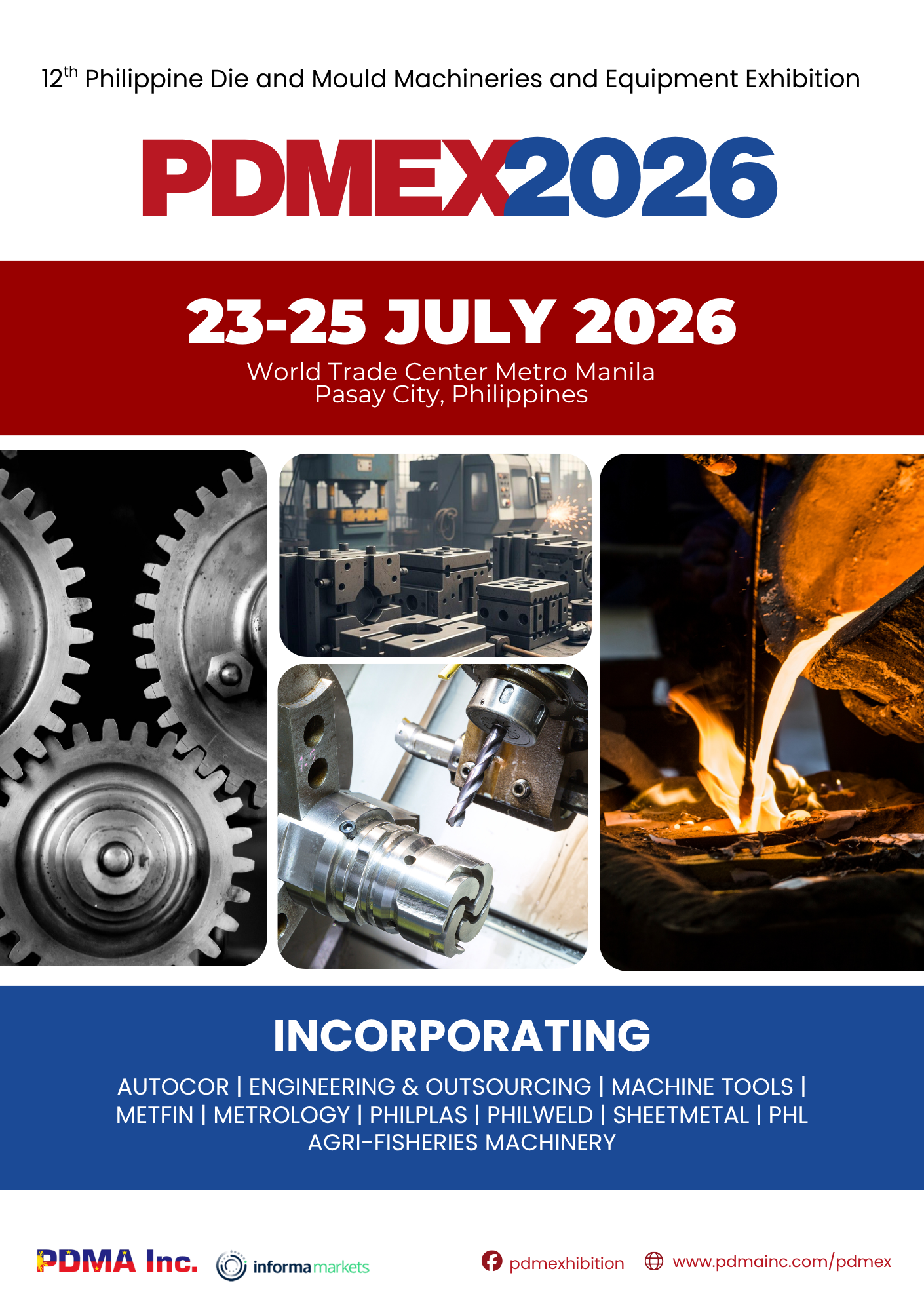 Pasay City, 5 December 2025 – The year 2026 marks a new chapter to drive manufacturing growth and excellence as the Philippine Die and Mould Association (PDMA), together with Informa Markets, announces the 12th Philippine Die and Mould Machineries and Equipment Exhibition (PDMEX) on 23-25 July 2026 at the World Trade Center Metro Manila in Pasay City. PDMEX is dedicated to the metalworking supply chain and manufacturing sector, where market leaders, technology innovators and the biggest industry players gather to showcase innovations and foster growth in the local manufacturing industry.