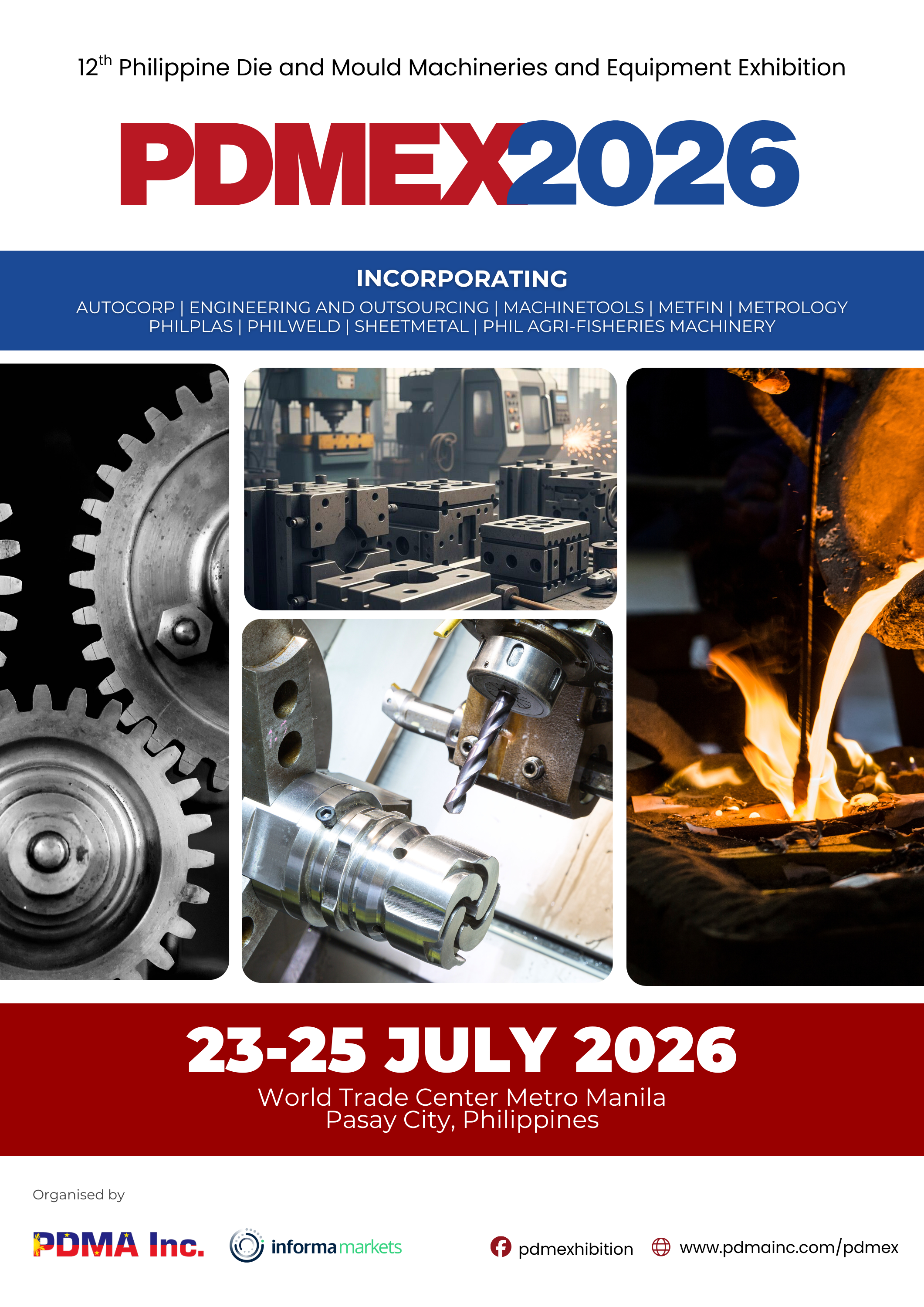 Pasay City, 5 December 2025 – The year 2026 marks a new chapter to drive manufacturing growth and excellence as the Philippine Die and Mould Association (PDMA), together with Informa Markets, announces the 12th Philippine Die and Mould Machineries and Equipment Exhibition (PDMEX) on 23-25 July 2026 at the World Trade Center Metro Manila in Pasay City. PDMEX is dedicated to the metalworking supply chain and manufacturing sector, where market leaders, technology innovators and the biggest industry players gather to showcase innovations and foster growth in the local manufacturing industry.