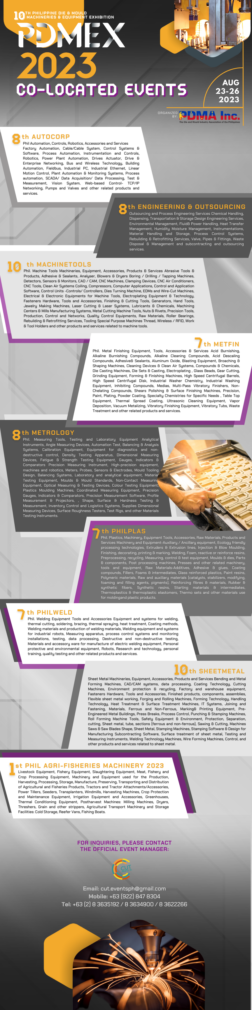 Join the country's largest, focused, and solely recognized machinery exhibition this August 23-26, 2023 at the World Trade Center Metro Manila, Philippines.